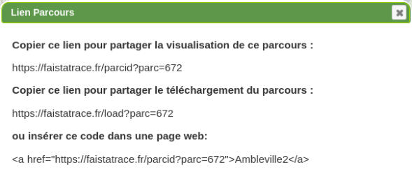 Permet de récupèrer les liens URL vers le parcours sélectionné.