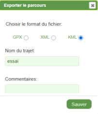 Exportation des parcours dans le format KML (Compatible Google Earth)