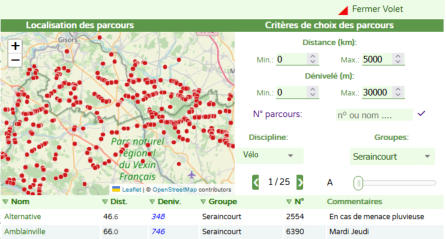 Vous pouvez lister uniquement vos parcours, en survolant «Choisir un parcours» un sous menu s’affiche: