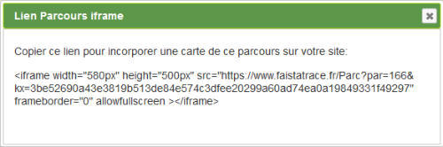 Permet d’insérer la carte du parcours dans un site web à l’aide d’une iframe en