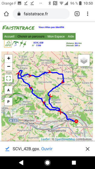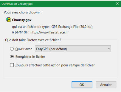 Soit en ouvrant dans le navigateur le site https://faistatrace.fr , puis choisir son parcours et le télécharger le fichier gpx