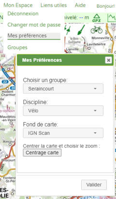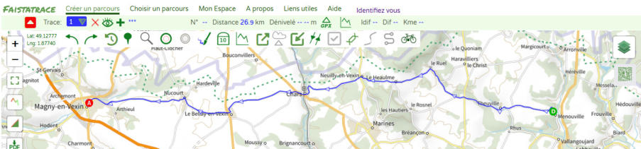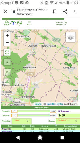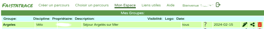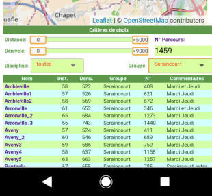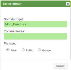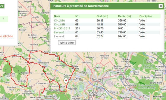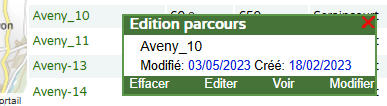 En ayant cliqué sur «Mes Parcours», comme précedemment et en sélectionnant un nom de parcours dans la liste,