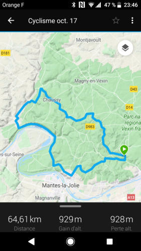 Le parcours et le dénivelé sont affichés, cliquer sur