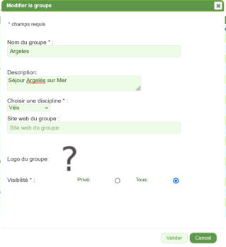 Il est possible par la suite de changer les paramètres d'un groupe en allant dans le menu “Mes Groupes” :