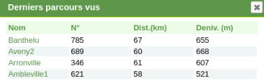 Montre l’historique des 5 derniers parcours vus ou édités.