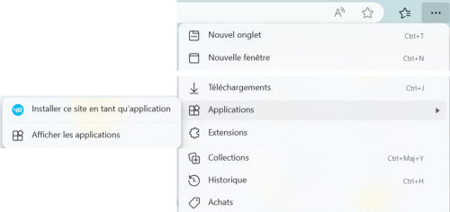 Sélectionner “Applications” puis “Installer en tant qu’application”