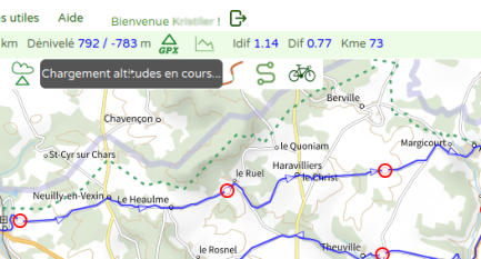 carte IGN, avant de calculer le dénivelé. Dans ce cas, le chargement des altitudes prend un peu de temps…