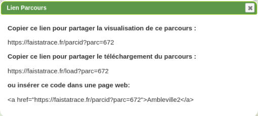Permet de récupèrer les liens URL vers le parcours sélectionné.
