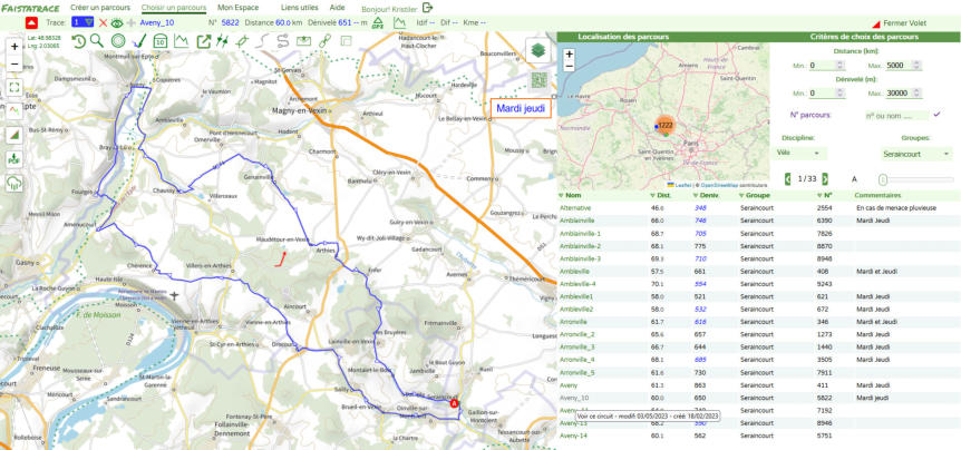 Vous pouvez lister uniquement vos parcours, en survolant «Choisir un parcours» un sous menu s’affiche:
