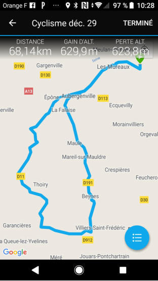Regarder sur le GPS dans « Parcours », il apparaît sous la forme « Cyclisme Dec. 29 »